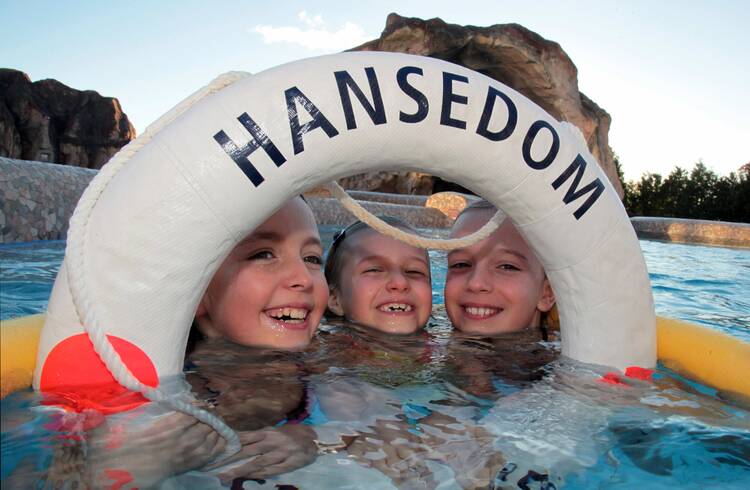 Was es im Hansedom gibt? Riesenwasserrutsche, Black Hole Rutsche – und, was wir besonders lieben: eine Familienrutsche, auf der sich die ganze Familie nebeneinander in die Tiefe stürzen kann. Wildwasserkanal, Kinderbecken, Saunalandschaft (nur für Erwachsene), Wasser- und Schwimmkurse.